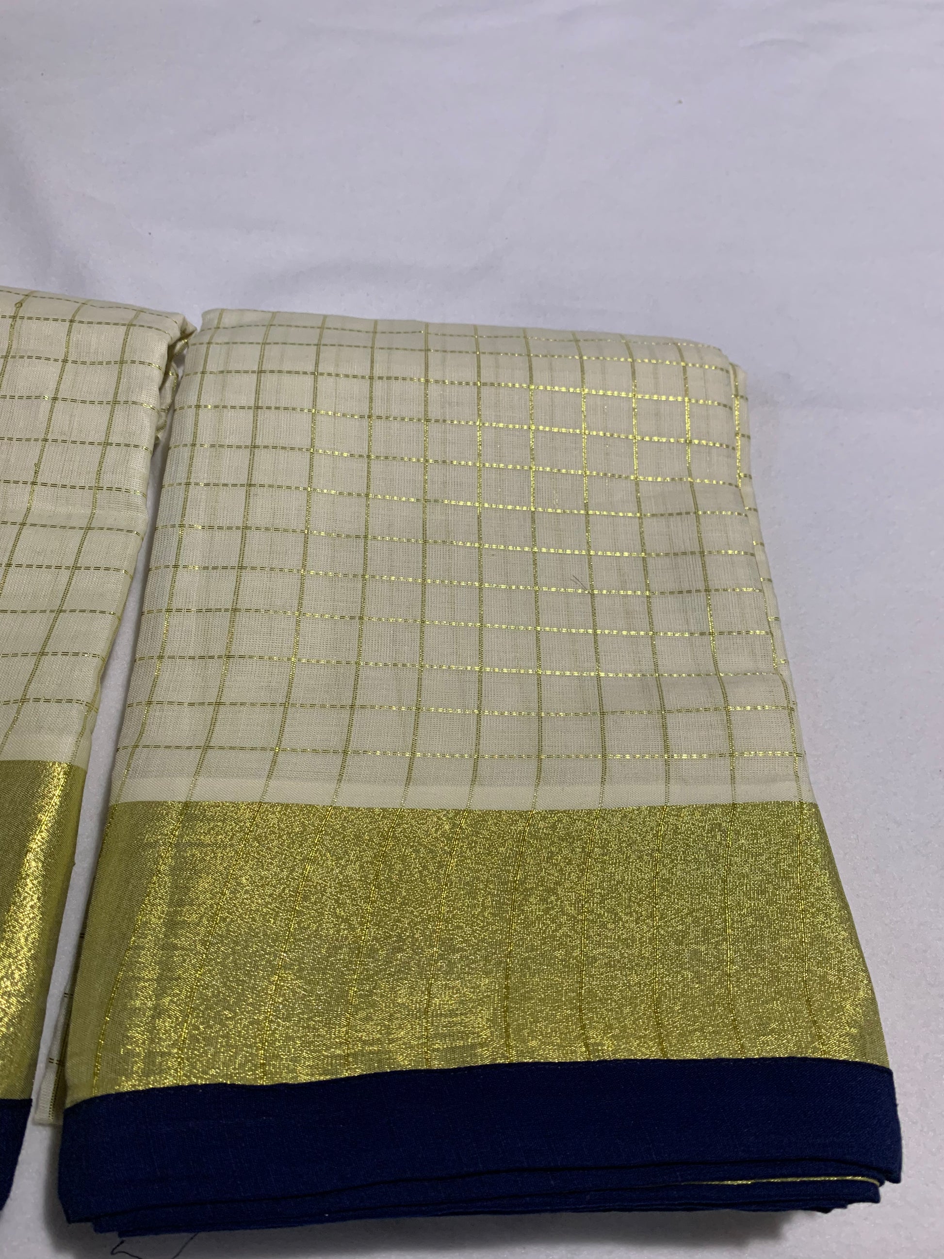.blouse: blue silk cotton blouse material with aari work on front and sleeves