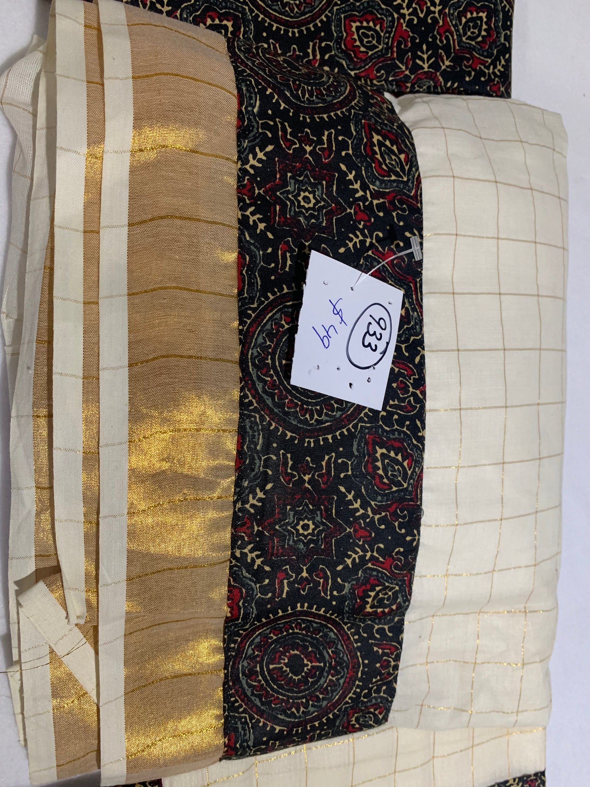 skirt: traditional off white cotton golden check stitched skirt with black ajar border